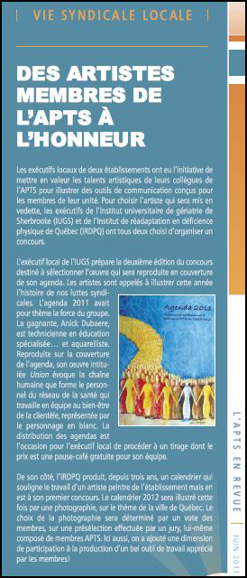 du syndicat de l’APTS du CSSS-IUGS pour faire la page couverture de