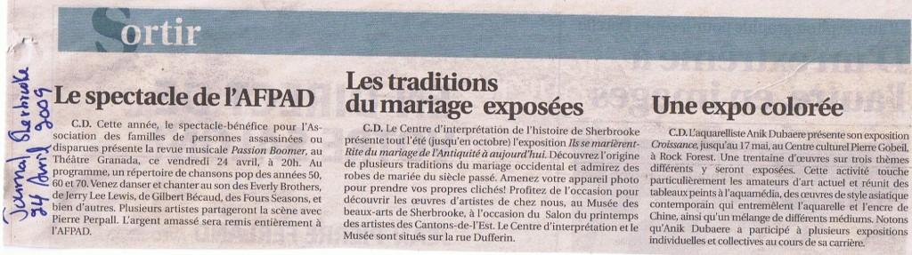 2009 Avril « Sortir », Cynthia Dubé, Journal de Sherbrooke