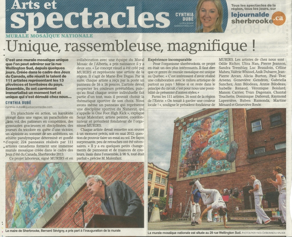 2013 Août « Unique, rassembleuse, magnifique », Cynthia Dubé, Le Journal de Sherbrooke