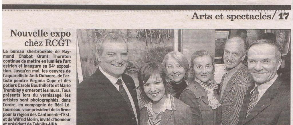 2008 Février « Nouvelle expo chez RCGT », Journal La Tribune, Sherbrooke